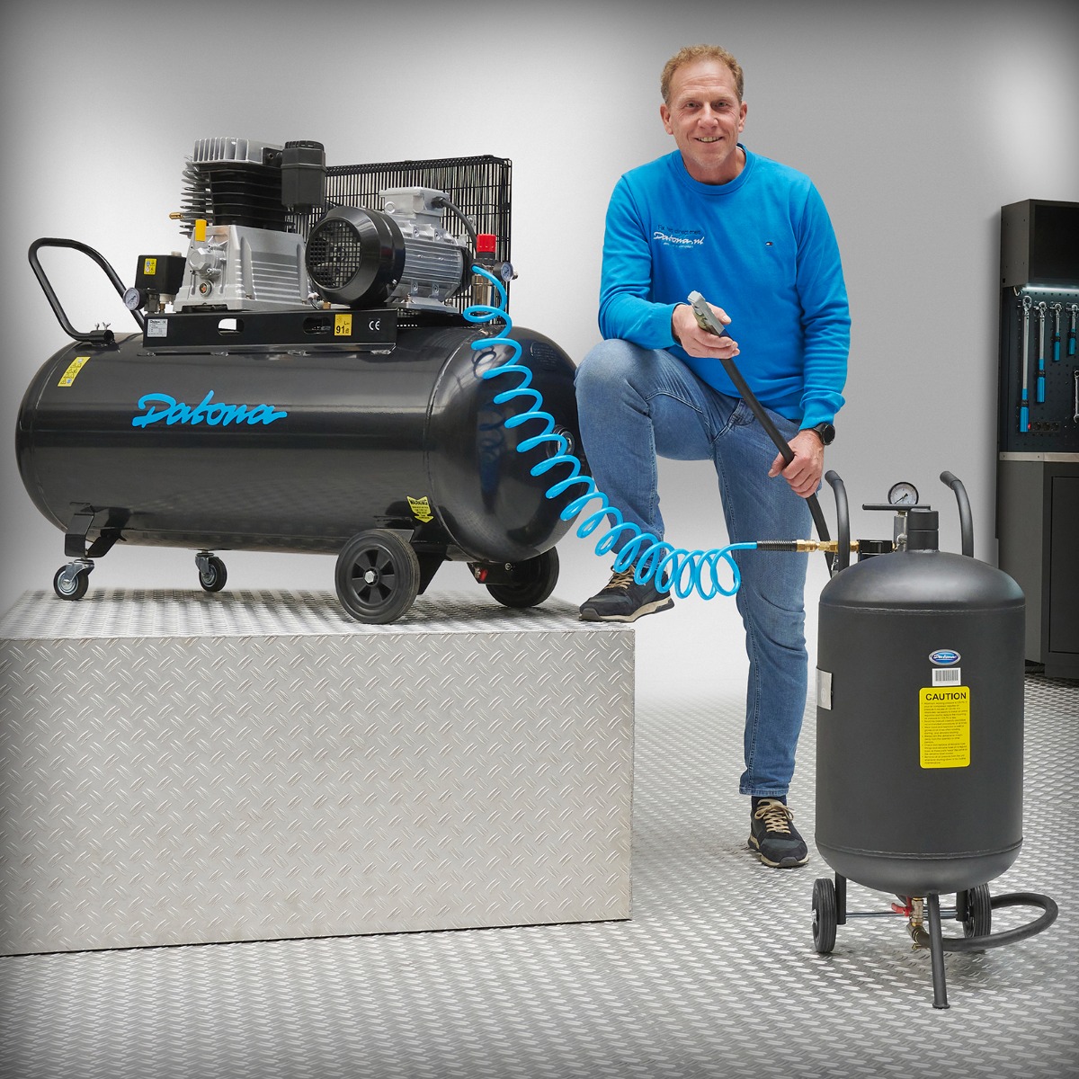 De kracht achter deze set is de garagecompressor met een tank van maar liefst 270 liter. Dankzij de twee krachtige cilinders en de 5.5 pk motor beschik je over een constante, krachtige luchttoevoer – precies wat je nodig hebt bij intensieve straalwerkzaamheden. De compressor werkt op een 380 volt aansluiting.