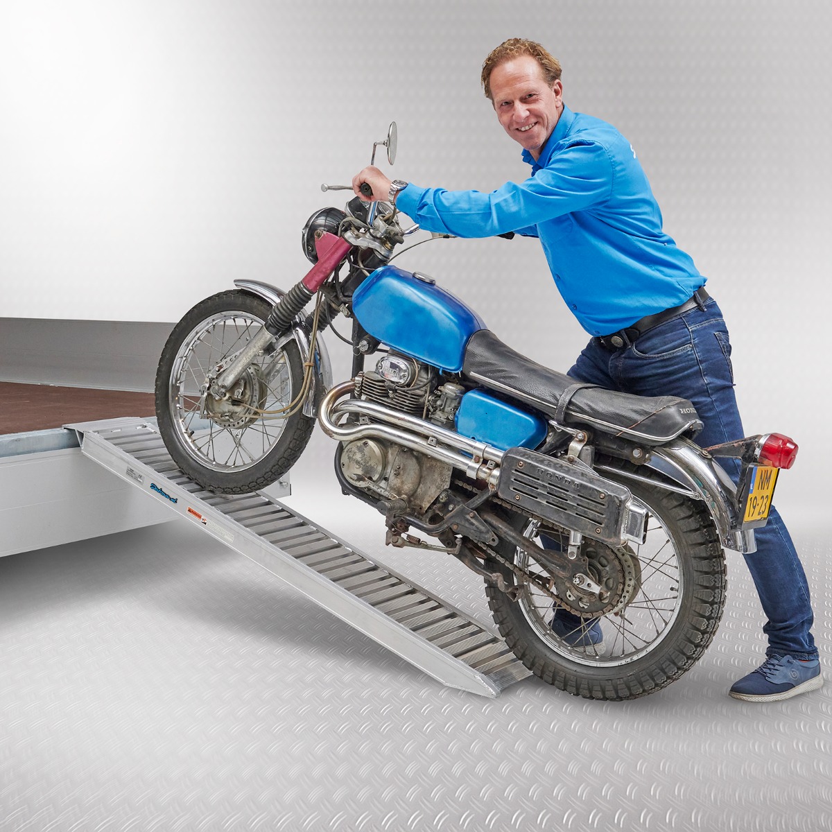 Hoogtes overbruggen met de auto doe je veilig en snel met de oprijplaten van Datona. Deze robuuste aluminium oprijplaat is gemaakt uit één stuk en daarom extra sterk. Gemakkelijk te hanteren en ideaal voor bijvoorbeeld het vervoeren van je auto, zitmaaier, kruiwagen of motorfiets. Het dichte antislip profiel geeft extra grip tijdens het oprijden van de helling tussen het voertuig en de oprijplank. Hierdoor staat je voertuig in no time veilig op de trailer of aanhanger.