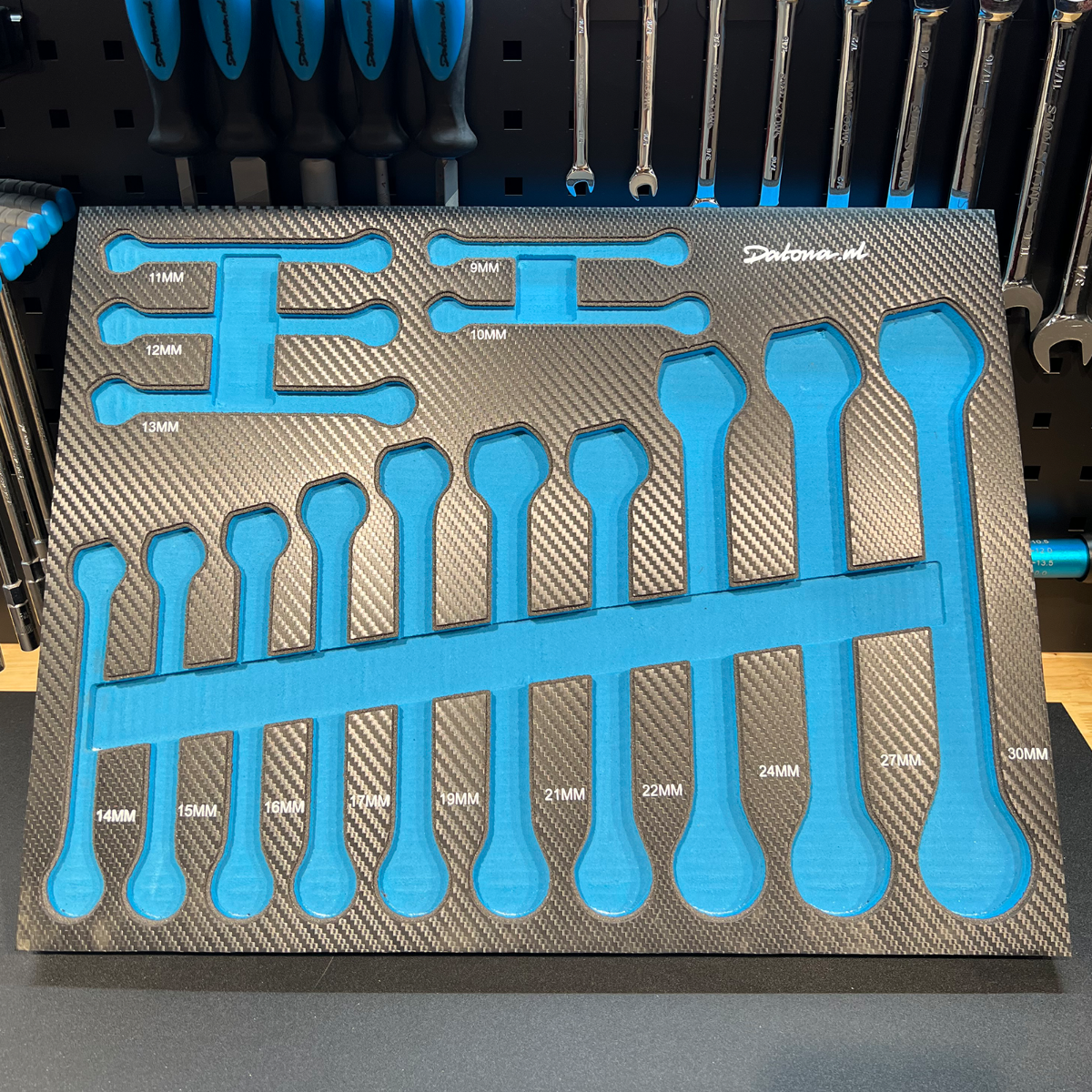 Deze foam inlay is geschikt om je Datona ring-steeksleutelset netjes te organiseren. Deze PRO softmodule past perfect in de gereedschapswagens van Datona. Hierdoor is deze inlay erg geschikt om je gereedschapswagen netjes in te richten. De afmetingen van de foam module zijn 53 x 40cm