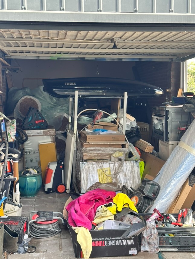 Iedereen kent het wel: de garage die ooit bedoeld was om te sleutelen of spullen netjes op te bergen, verandert langzaam in een opslagplaats. Fietsen, dozen, losse gereedschappen… het stapelt zich ongemerkt op. Zo ook bij deze klant. De oude situatie was verre van praktisch: weinig ruimte om te bewegen, geen overzicht en zeker geen plek om comfortabel aan de motor te werken.