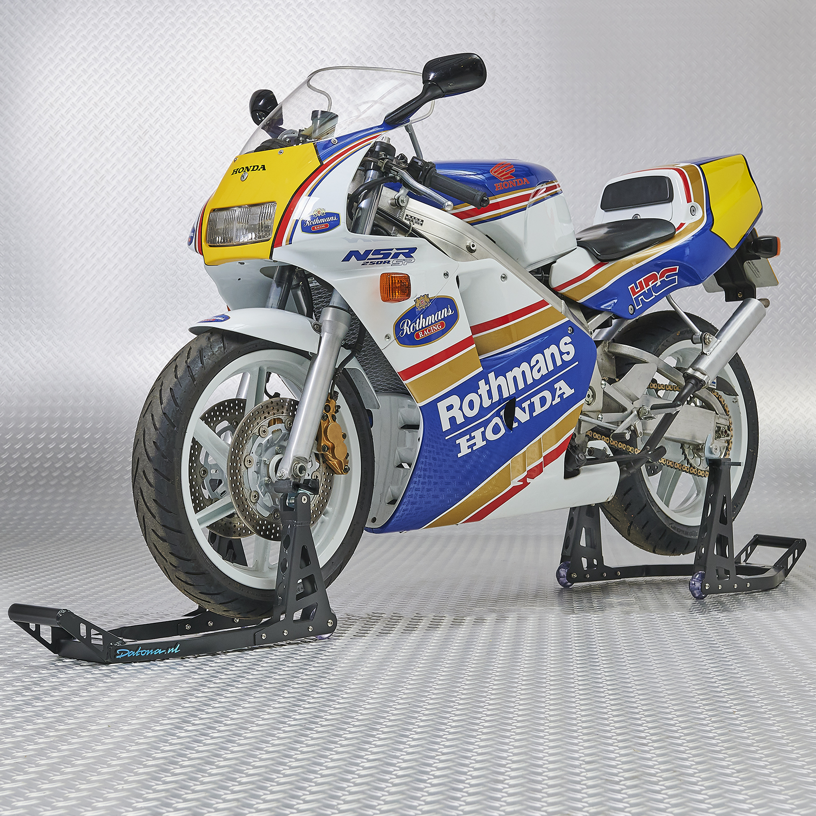 Paddockstands: de banden raken de grond niet meer, hierdoor kun je makkelijk de ketting smeren en verschillende sleutel- en onderhoudswerkzaamheden uitvoeren.