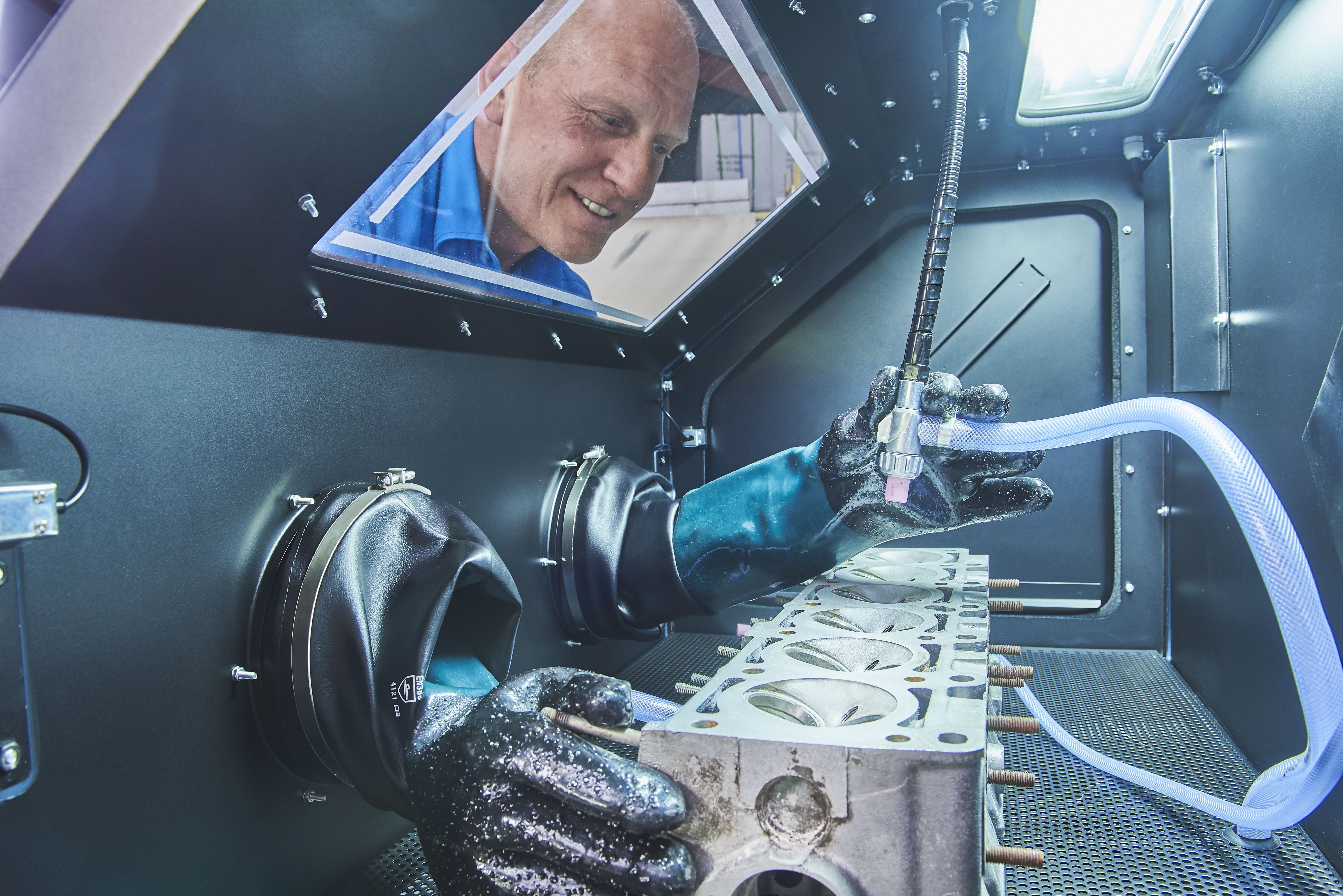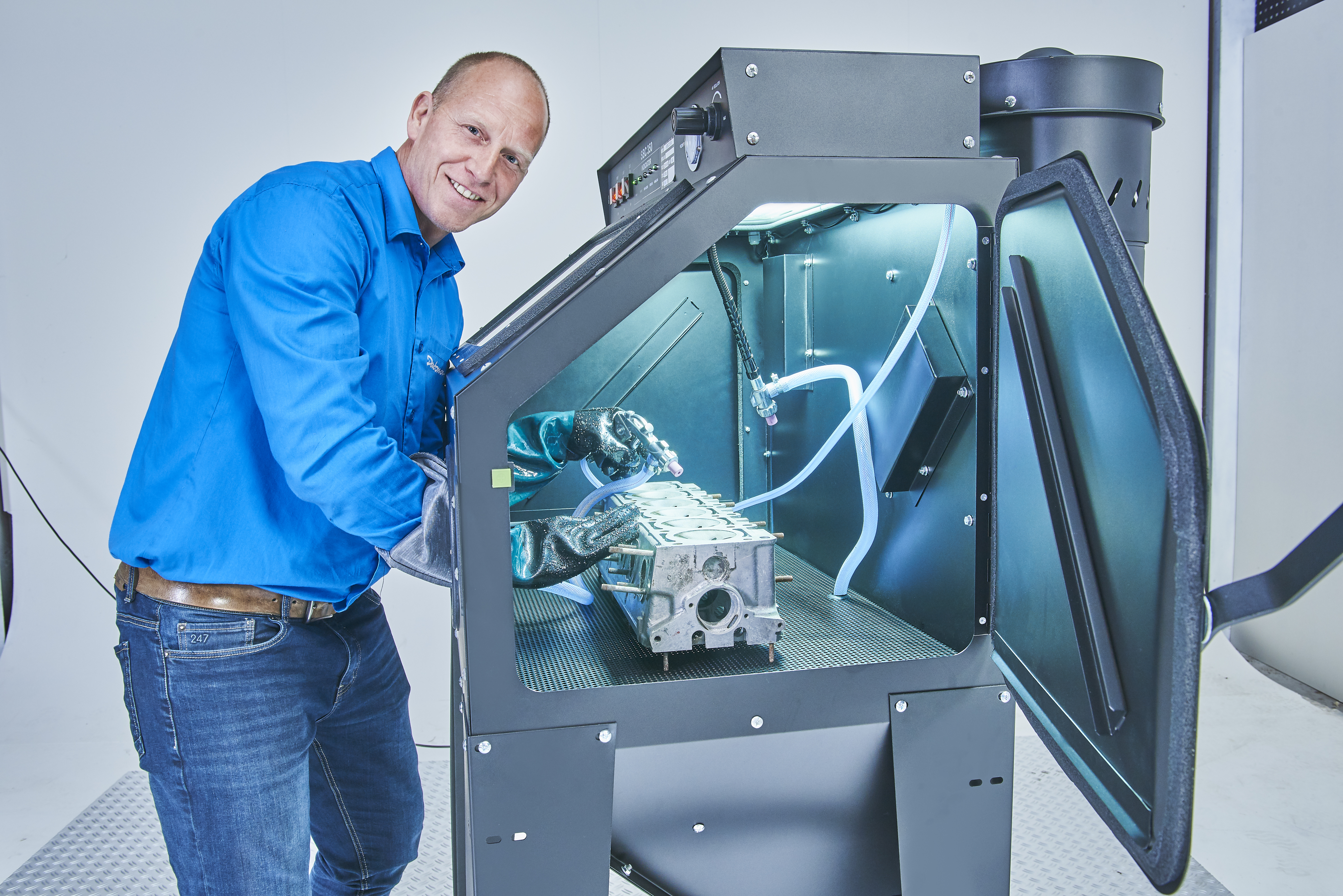 Allereerst werk je veel veiliger en schoner, omdat stof en straalmiddel niet in je werkruimte terechtkomen.
