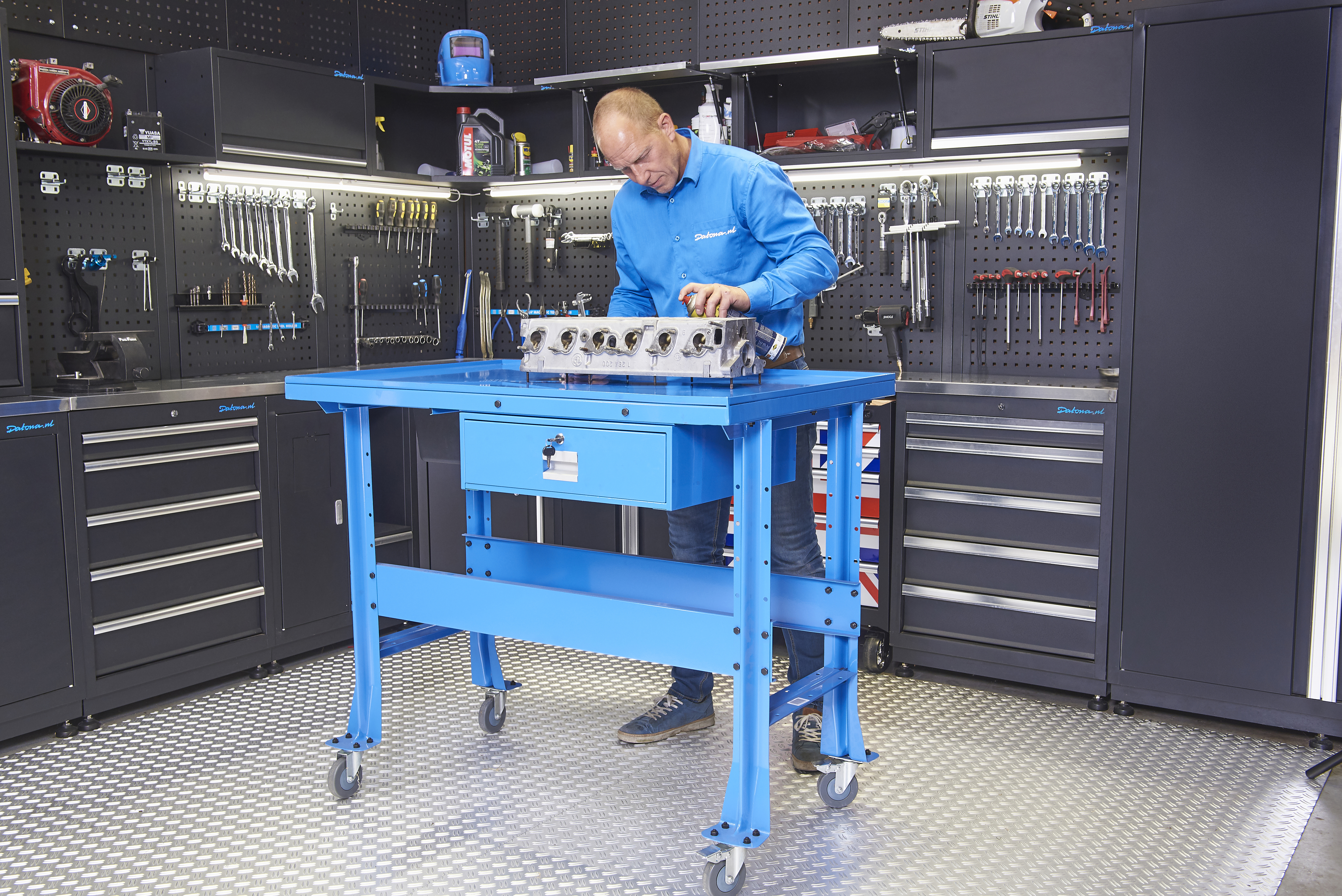 Voor wie graag netjes werkt, of het gewoon zat is om alles op de grond te doen, is een verrijdbare montagetafel ideaal. Je rolt hem naar je klus toe, legt onderdelen overzichtelijk neer en je hebt een werkplek op prettige hoogte. En die lekbak? Die is echt een lifesaver bij olie, koelvloeistof of vieze onderdelen. Minder troep op de vloer, minder schoonmaken achteraf.