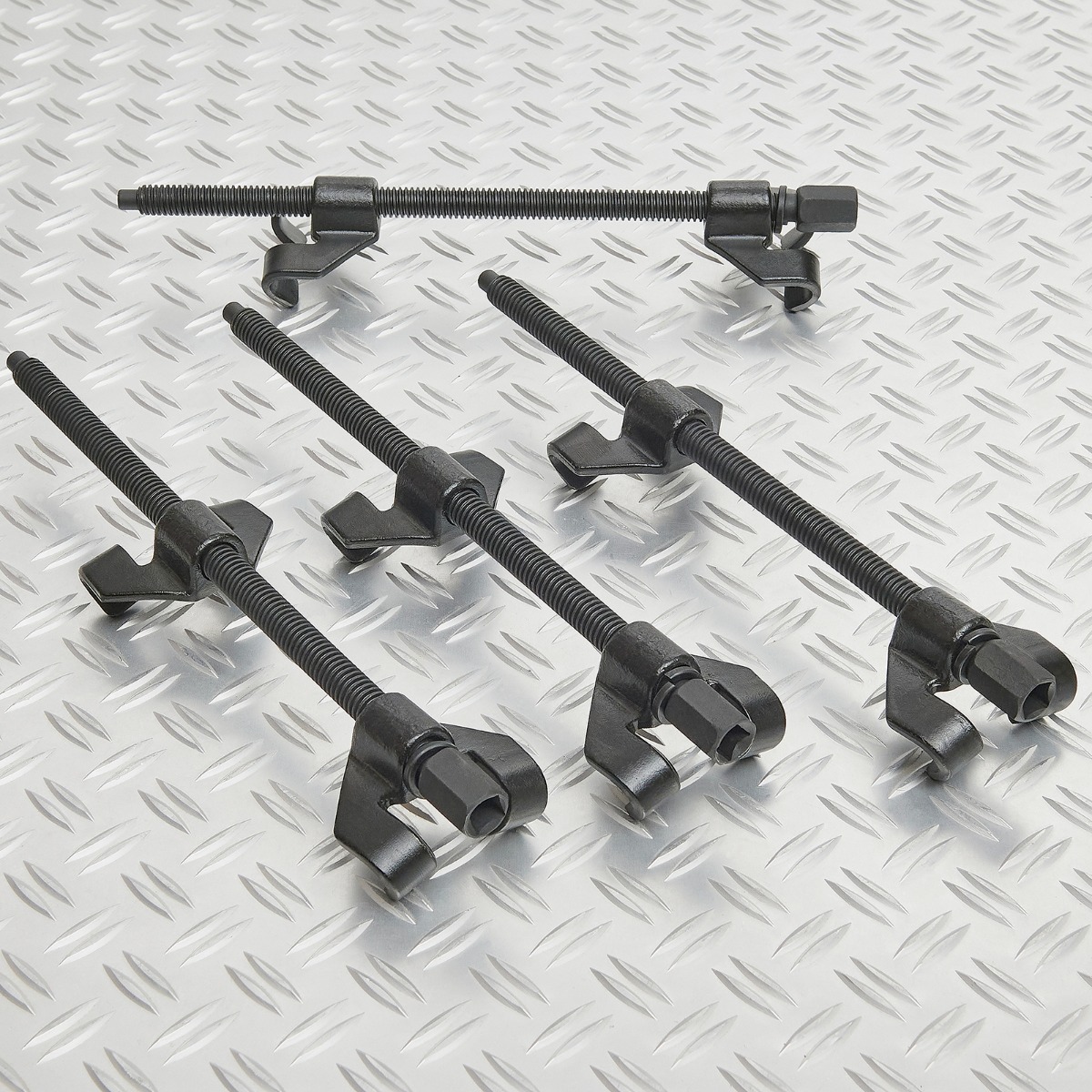 Veerspanners zijn enorm populair onder automonteurs en doe-het-zelvers die graag aan hun eigen auto sleutelen. En dat is niet voor niets. Je kunt veerspanners voor een heleboel werkzaamheden gebruiken. Een set met veerspanners is bijvoorbeeld onmisbaar bij het verlagen van auto’s. Maar ook bij het vervangen van de schokbrekers kun je niet zonder een paar veerspanners. Met een set van 4 veerspanners kun je allerlei werkzaamheden aan de ophanging van je auto uitvoeren. Als jij veel bezig bent met dit soort werkzaamheden, zorg er dan voor dat je een complete set met 4 veerspanners in huis haalt.